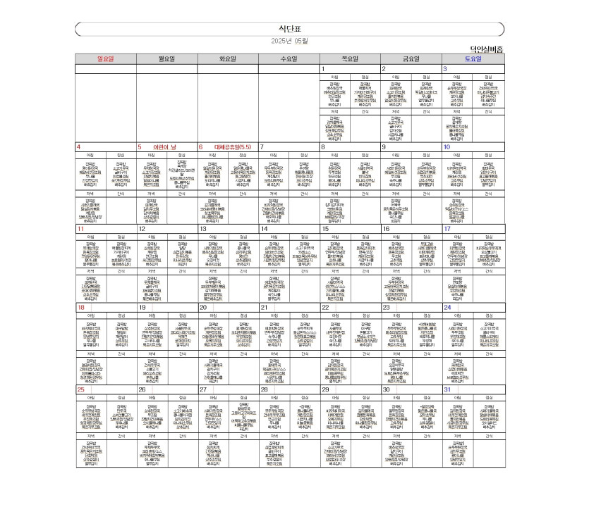 2025년 ♥덕인실버홈 5월 식단표♥ 작성자 정보 최고관리자 작성 작성일 2025.10.22 19:43 컨텐츠 정보 12 조회 목록 본문 2025년 ♥덕인실버홈 5월 식단표♥ SNS 공유 관련자료 이전 2025년 ♥덕인실버홈 6월 식단표♥ 작성일 2025.10.22 19:43 다음 2025년 ♥덕인실버홈 4월 식단표♥ 작성일 2025.03.28 12:00 댓글 0개 등록된 댓글이 없습니다. 로그인한 회원만 댓글 등록이 가능합니다. 목록