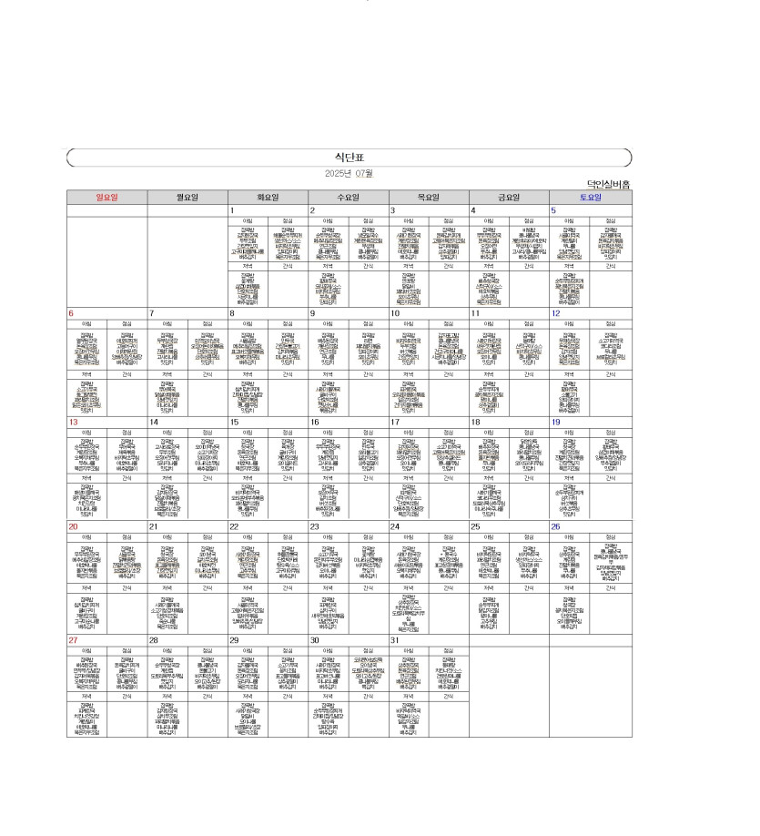 2025년 ♥덕인실버홈 7월 식단표♥ 작성자 정보 최고관리자 작성 작성일 2025.10.22 19:43 컨텐츠 정보 16 조회 목록 본문 2025년 ♥덕인실버홈 7월 식단표♥ SNS 공유 관련자료 이전 2025년 ♥덕인실버홈 8월 식단표♥ 작성일 2025.10.22 19:44 다음 2025년 ♥덕인실버홈 6월 식단표♥ 작성일 2025.10.22 19:43 댓글 0개 등록된 댓글이 없습니다. 로그인한 회원만 댓글 등록이 가능합니다. 목록