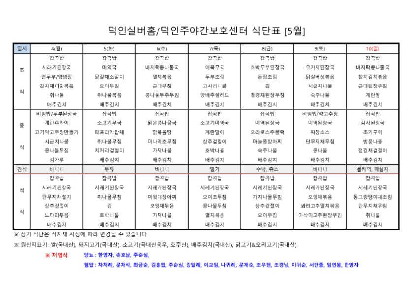 ♥덕인실버홈 05월 프로그램계획표 및 식단표♥ 작성자 정보 관리자 작성 작성일 2020.05.18 15:08 컨텐츠 정보 773 조회 목록 본문 ♥덕인실버홈 05월 프로그램계획표 및 식단표♥ SNS 공유 관련자료 이전 ♥덕인실버홈 06월 프로그램계획표 및 식단표♥ 작성일 2020.05.29 12:07 다음 ♥덕인실버홈 04월 프로그램계획표 및 식단표♥ 작성일 2020.05.18 15:07 댓글 0개 등록된 댓글이 없습니다. 로그인한 회원만 댓글 등록이 가능합니다. 목록
