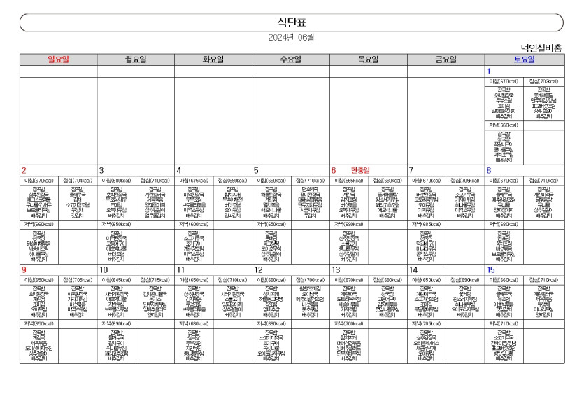 2024년 ♥덕인실버홈 6월 식단표♥ 작성자 정보 관리자 작성 작성일 2024.05.31 16:05 컨텐츠 정보 100 조회 목록 본문 2024년 ♥덕인실버홈 6월 식단표♥ SNS 공유 관련자료 이전 2024년 ♥덕인실버홈 7월 식단표♥ 작성일 2024.06.28 12:12 다음 2024년 ♥덕인실버홈 5월 식단표♥ 작성일 2024.04.29 18:10 댓글 0개 등록된 댓글이 없습니다. 로그인한 회원만 댓글 등록이 가능합니다. 목록
