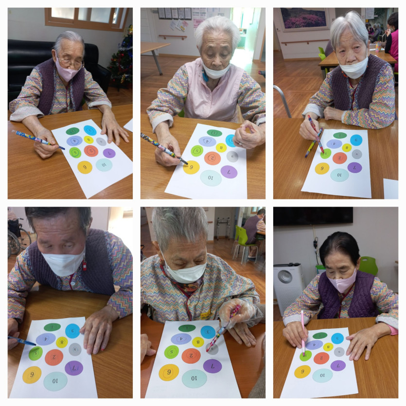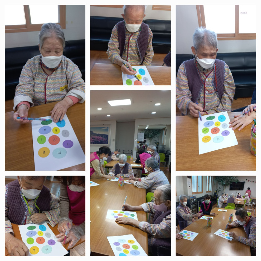 '숫자 찾기' 활동에 열심히 참여하셨습니다. 작성자 정보 관리자 작성 작성일 2022.12.21 16:48 컨텐츠 정보 1,490 조회 목록 본문 저희 덕인실버홈 어르신들께서 오후 인지 프로그램 시간에 1~10까지 수를 찾으시며 어떤 색깔 바탕에 있는지를 말씀들 하셨습니다. SNS 공유 관련자료 이전 10월~12월 생신이신 어르신들 생신잔치 진행하셨습니다. 작성일 2022.12.26 17:57 다음 재미있고 맛있는 '과자 팔찌' 만들기 작성일 2022.12.21 16:38 목록