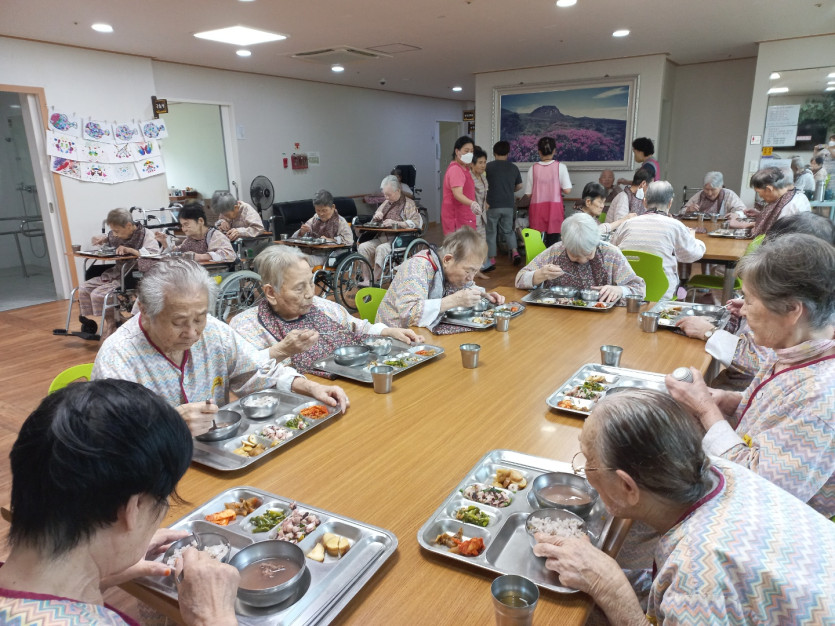 올 여름 마지막 더위인 말복 날에 저희 덕인실버홈에서 어르신들의
