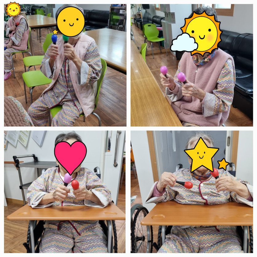 오늘은 마라카스를 이용한 체조를 하셧습니다.