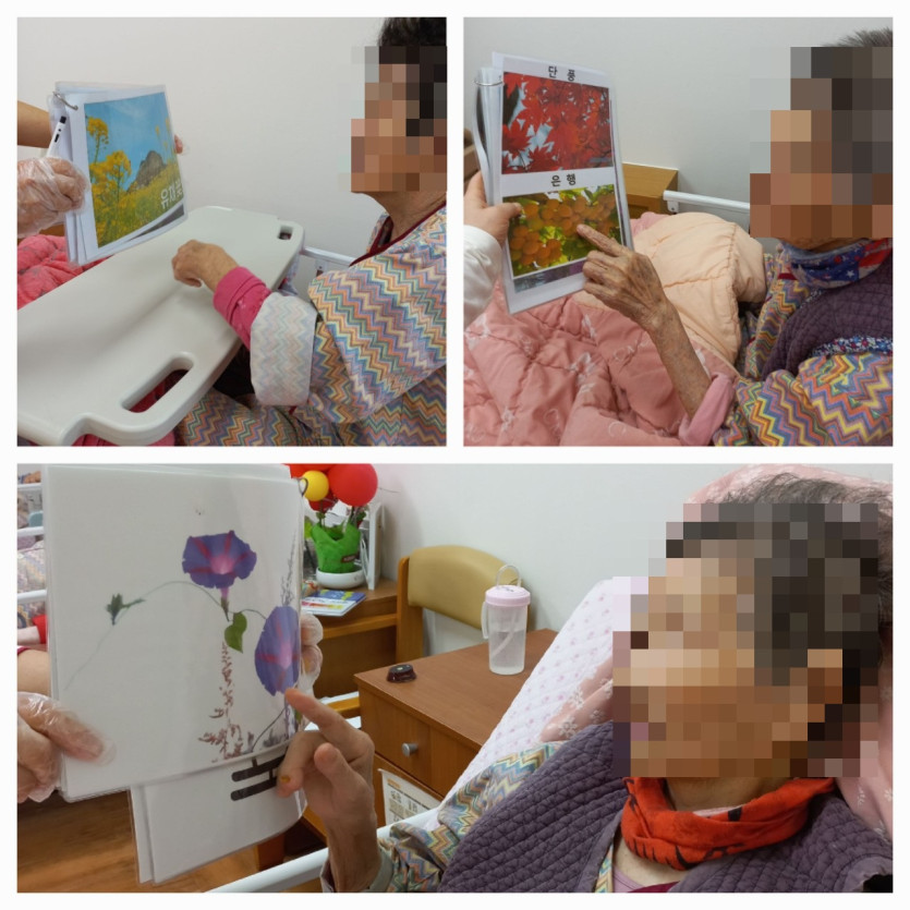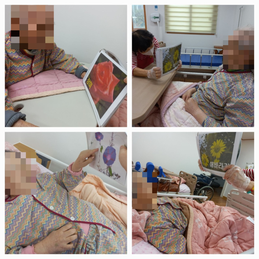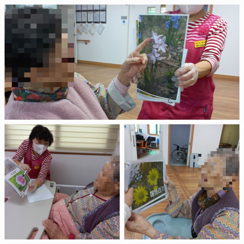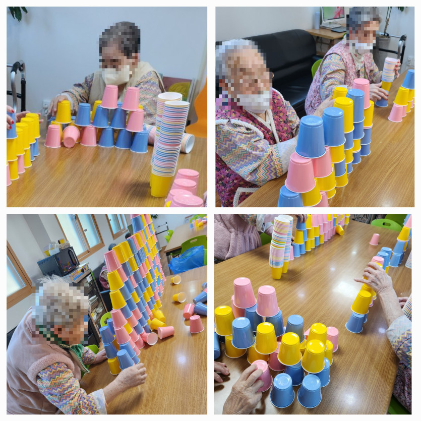 입소어르신들의 인지기능 유지 및 향상을 위해 컵쌓기, 꽃이름 맞추기 프로그램을 진행하였습니다.