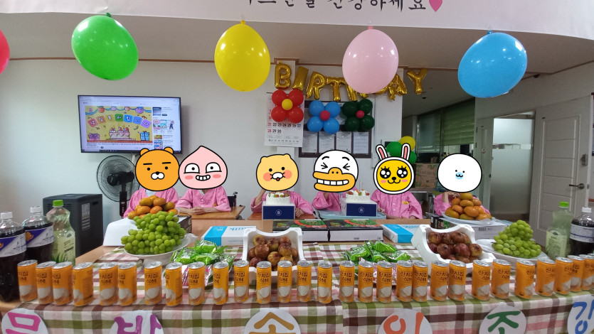 생신을 맞으신 어르신들을 위해 다 함께 모여