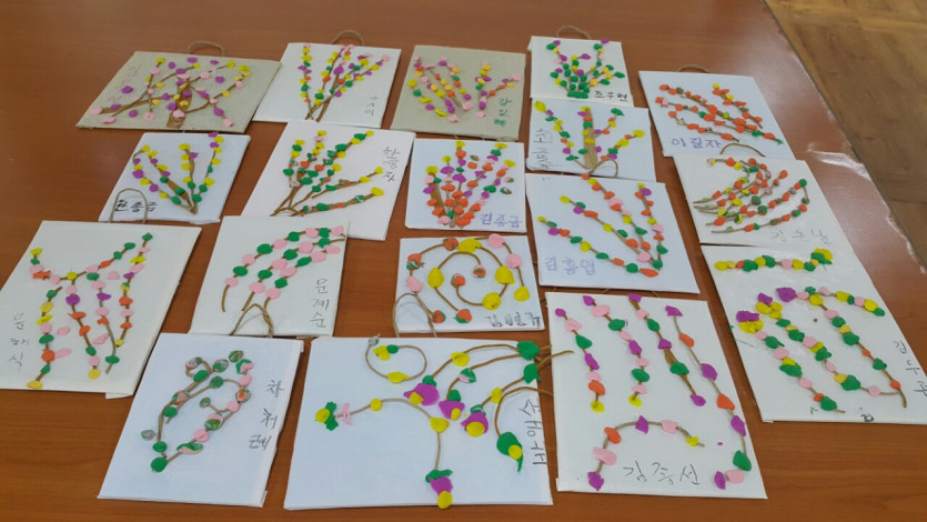 외부강사초청 프로그램 "봄꽃 꾸미기" 작성자 정보 관리자 작성 작성일 2020.03.05 15:15 컨텐츠 정보 5,142 조회 목록 본문 나뭇가지에 여기저기 매달려 예쁘게 핀 꽃들을 잘 만드셨어요 SNS 공유 관련자료 이전 티셔츠 만들기 작성일 2020.03.05 15:15 다음 외부강사초청 프로그램 "물고기 꾸미기" 작성일 2020.03.05 15:08 목록
