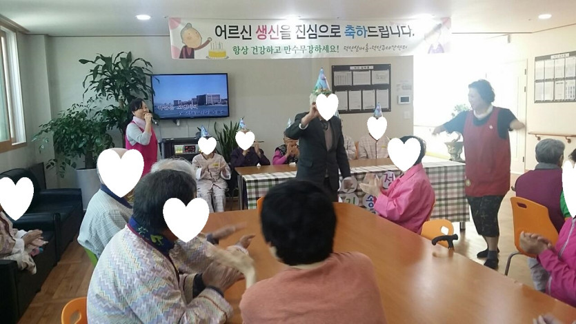어르신들의 생신을 맞이하여 온 직원과 어르신들의 축하의 자리를 갖었습니다. 어르신들이 마이크를 잡고 노래와 춤을 추시며 즐거운 자리였어요.. 어르신들의 생신을 축하드립니다