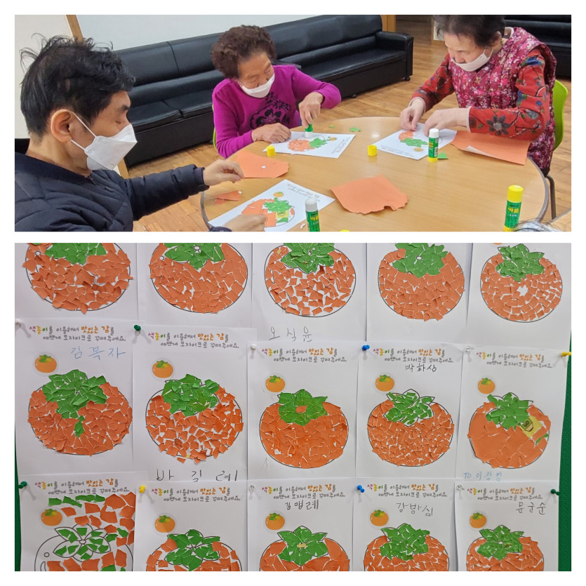 모자이크 작성자 정보 관리자 작성 작성일 2023.12.12 09:27 컨텐츠 정보 194 조회 목록 본문 단감 모자이크를 예쁘게 꾸며보았습니다 SNS 공유 관련자료 이전 실버건강체조 및 청기백기 작성일 2023.12.12 09:29 다음 단풍잎 공작새 꾸미기 작성일 2023.11.02 10:47 목록